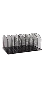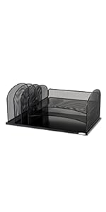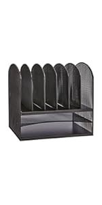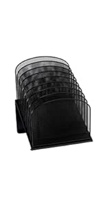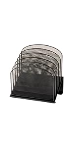 Onyx Mesh 5-Tier Vertical Desktop Organizer keeps important files and documents visible, organized and within easy reach. The commercial-grade mesh steel provides strength and stability while the powder coat finish helps reduce nicks and scrapes for extended use. Five 2" wide tiered sections hold file folders, cookbooks, homework, journals and binders. Place it in business and home offices, small cubicles, mailrooms, school rooms, hobby rooms and work desks and communal tables for a long-lasting workspace organization solution. The Onyx Family includes a diverse collection of stylishly-designed steel mesh products, from desktop organizers to machine stands. Onyx makes it easy to create a sleek, professional, organized workspace.